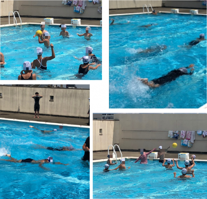 6年生のプール水泳学習です。水慣れに水球をしました。皆、とても楽しそうでした。そのあと、クロールや平泳ぎの練習をしました。