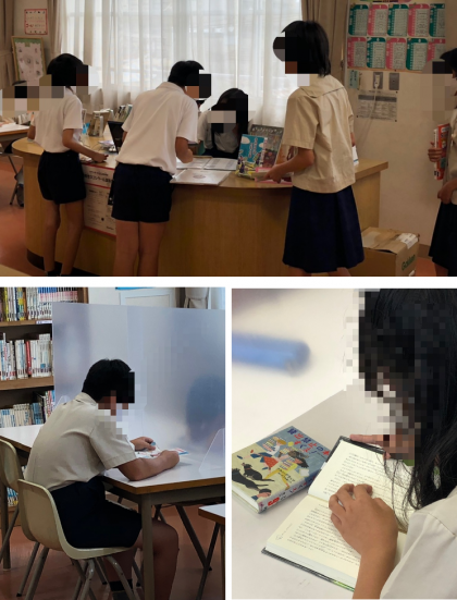 6年生の図書です。夏休みに向けて本を借りていました。借り終わった子は、読書に没頭していました。