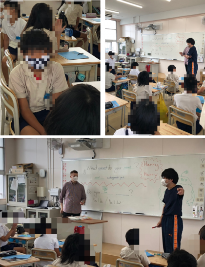 5年生の英語です。英語を使って友達同士で質問しあったり、先生に質問したりしながら英語に慣れていきます。