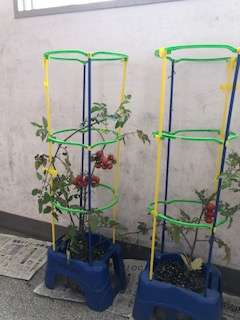 2年生が鉢植えで育てていたプチトマトがたくさん実りました。きれいな赤色でとてもかわいいですね。