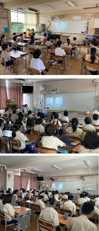 終業式は各教室をTeamsでつないでオンラインで行いました。教頭先生の司会のもと、校長先生のお話、児童代表の「1学期を振り返って」の作文披露、生活指導担当先生の休み中の暮らしについてのお話、などがありました。校長先生との挨拶の時は、学校中に響くような大きな声であいさつができました。児童代表の二人はしっかりと作文を披露し、どの教室の子どもたちも静かに聞いていました。