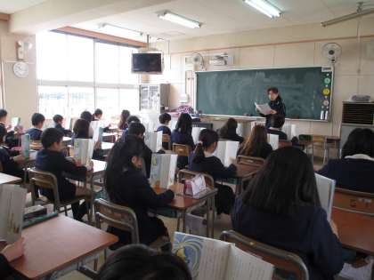 次は4年生です。国語の学習をしていました。みんな真剣な表情で黙読中です。
