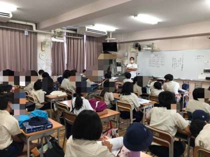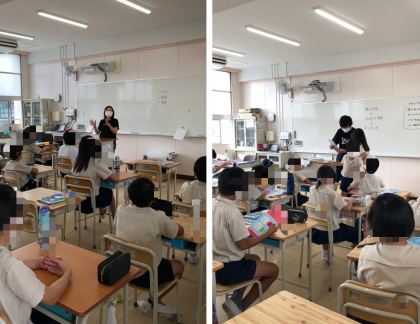 学級活動の様子です。夏休みの課題や図画工作作品などの提出、席決めなどをしていました。自分が作成した作品の説明を発表している学級もありました。
