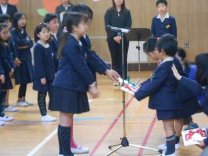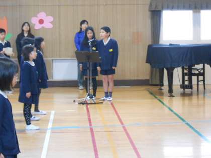 6年生のお祝いのことばやお守りの贈呈が行われました。