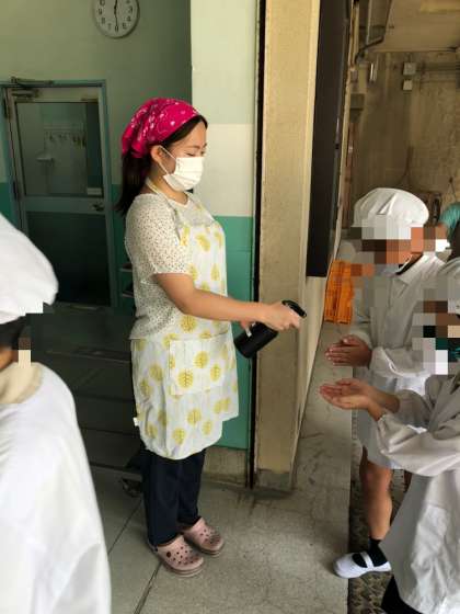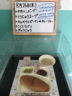 今日から、給食が始まりました。今日の献立は、焼きハンバーグ、豆乳スープ、キャベツとピーマンのカレーソテー、黒糖パン、牛乳です。感染症の状況を考えて、給食当番の子どもたちには給食を受け取る前にアルコールで手指消毒をしてもらいます。給食時以外にも休み時間の後などにアルコールによる手指消毒を徹底していきます。アレルギーや体質などの関係でアルコール使用に不安のある保護者の方は担任までご相談ください。よろしくお願い申しあげます。