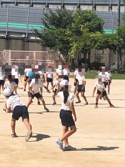 3年生の体育です。学級全員でのドッジボール。暑い中でしたが、とても楽しそうでした。