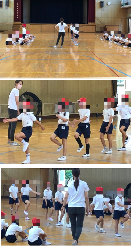 2年生の体育です。この学年も運動会に向けた取り組みです。行進の練習をしていました。互いに見合ってよいところを見つけあっていました。
