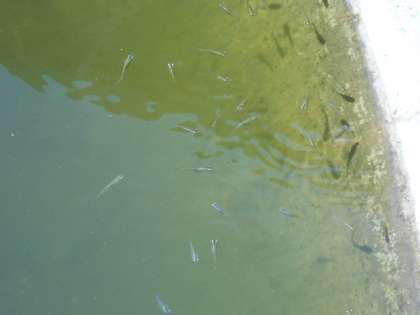 春先、ビオトープには黒メダカが十数匹確認できていました。
