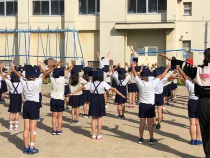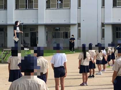 今朝は、児童朝会がありました。運動場に集まっての朝会は久しぶりです。マスクをちゃんとし、間隔をしっかり取っての朝会でした。