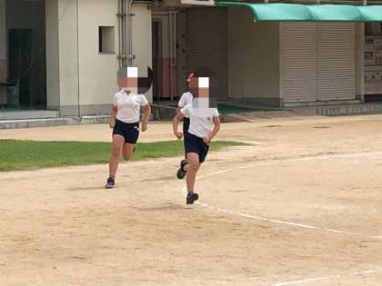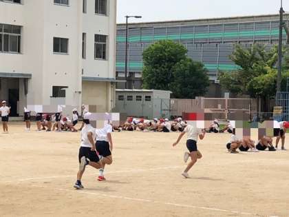 4年生の体育です。運動会に向けて個人走の練習をしていました。並び方や順番などを決めた後、実際に走っていました。