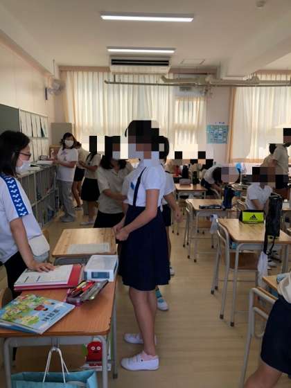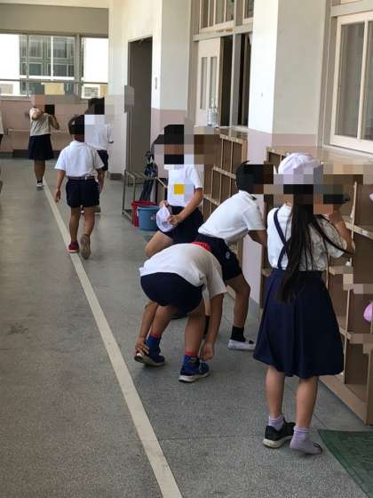 休み時間、運動場へ急ぐ子や教室で先生とお話をして過ごす子など様々です。