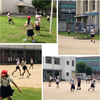 午前中は赤旗が立っていて使えなかった運動場が、昼休みから使えるようになりました。大勢の子たちが遊んでいました。みんな、元気です!