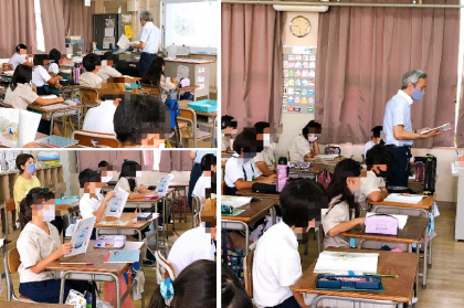 4年生の国語です。みんな集中して先生の範読を聴き、文章を目で追っていました。