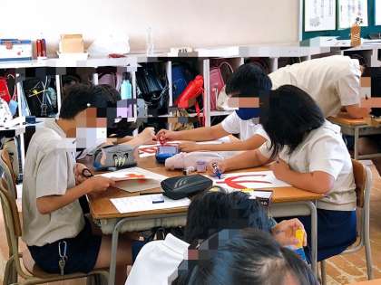 6年生の様子です。運動会スローガンの掲示物づくりをしていました。6年生は