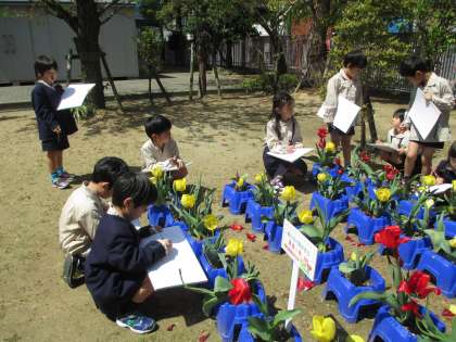 花びらの数を数えたり、葉っぱの形を観察して、スケッチしました。