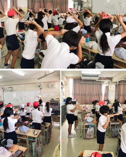 2年生が教室で団体競技の練習をしていました。ダンスの細かいところを最終チェックして1年生との合同練習に臨むんだそうです。