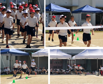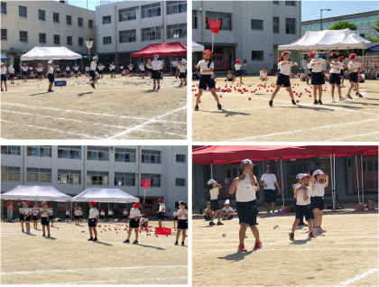 2年生の様子です。トラック約半周の個人走と1年生と合同のダンス玉入れでした。ダンスがかわいい!