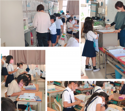 2年生の様子です。漢字ノートや算数ノートなどに取り組んでいました。既習のところを自分のペースで進んでいました。できたら学級担任かサポーターさんかに〇付けをしてもらっていました。