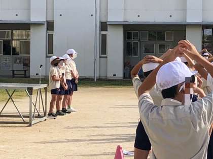 久々に児童朝会をしました。10月にある班別の挨拶運動に向けて班活動をしておきたいこともあって開催しました。集会委員会が〇×クイズをしてくれました。