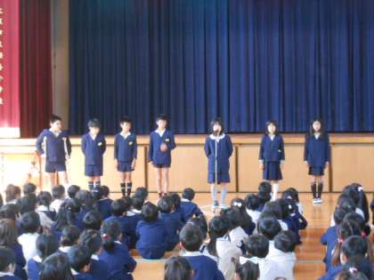 本日、児童集会で各委員会の委員長紹介がありました。