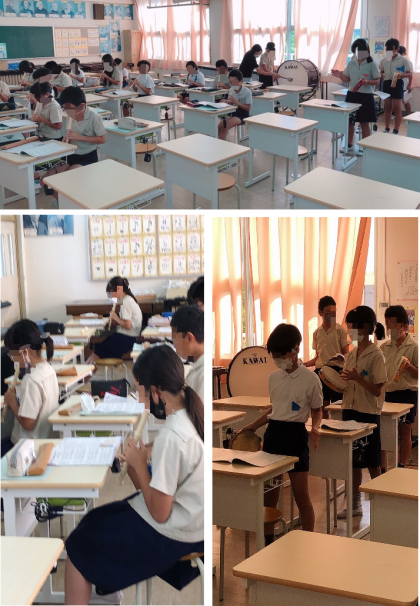 5年生の音楽です。合奏の練習をしていました。リコーダーのメロディーがしっかりしてるので打楽器が合わせやすそうでした。
