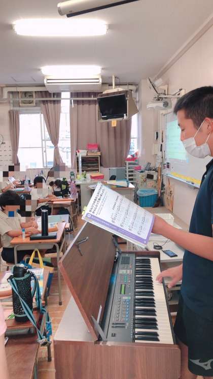 3年生の音楽です。先生のオルガンに合わせてリコーダーのリズム奏をしたり、DVDの音楽に合わせて楽しく歌ったりしていました。つぎの学習曲は「富士の山」だそうで、歌詞をよく読んでイメージを膨らませていました。