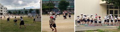 今日も昼休みにたくさんの児童が運動場で遊んでいました。