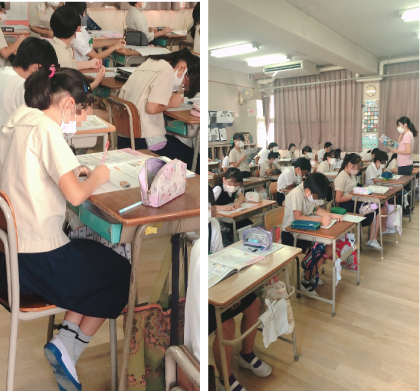 4年生の保健の学習です。より良い発育・発達のために、運動やバランスの良い食事など気を付けることを教科書やプリントなどを使って学んでいました。