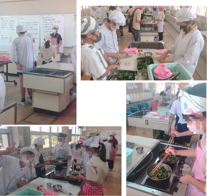 6年生の家庭科です。感染症対策に充分気を付けながら(手洗い・消毒の徹底と会話は最低限のコミュニケーションのみ)今年最初の調理実習をしました。ほうれん草とベーコン、コーンの油いためをつくりました。ほうれん草は火を通すとかさが減り食べやすくなることも実感出来ました。後で子どもたちに感想を聞くと、「たのしかった」「おいしかった」と口々に言ってました。よかったです。