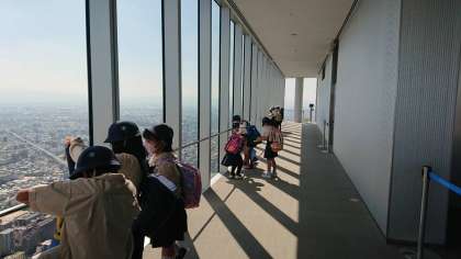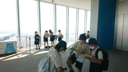 ハルカスにつきました。展望階からのながめはとても素晴らしいそうです。大阪の街並みをよく観察してメモをとっているようですね。