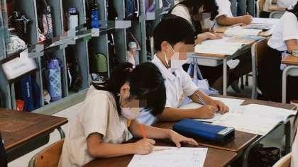 2年生の国語です。書写プリントに取り組んでいました。姿勢に気を付けて丁寧に書いていました。