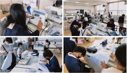 5年生の家庭科です。ナップザックづくりをしていました。ミシンを使って縫っていきます。ミシンを初めて使う子がほとんどなので、慌てず、ゆっくり丁寧に頑張ってほしいです。