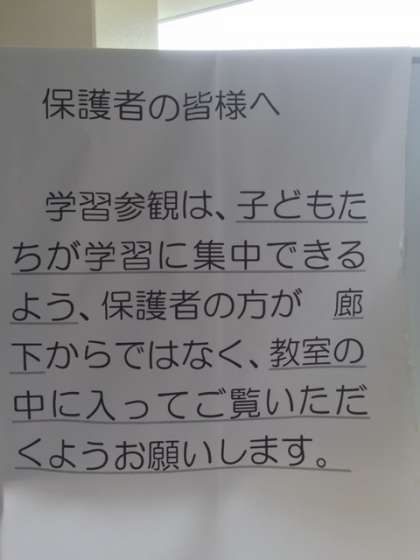 さて、今日は、保護者の皆様に、教室の中に入って参観をしていただくようお願いしました。