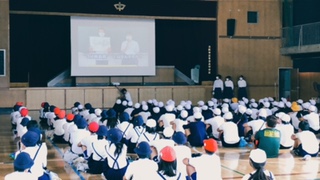 はじめに、講堂で梅香、春日出、西九条の6年生が集まり、中学校の先輩からの話を聞きました。