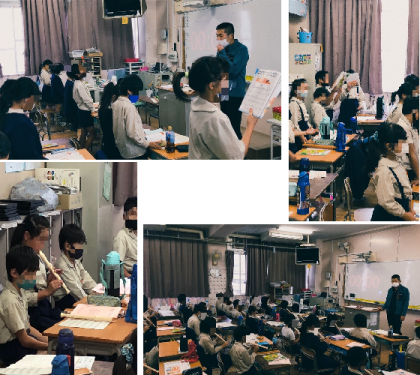 3年生の音楽です。合唱(とてもきれいでやさしく聞こえました)、リコーダー合奏(とても力強く聴こえました)をした後、リコーダーのテストをしていました。
