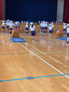 自分にあった高さの跳び箱を選んで、何度もチャレンジしています。