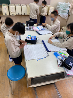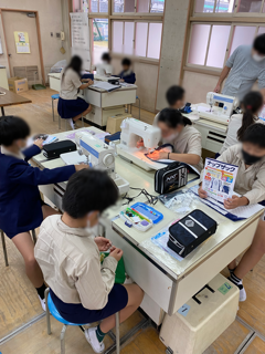 作業の手順やミシンの使い方など、友達と教え合って協力して活動していました。