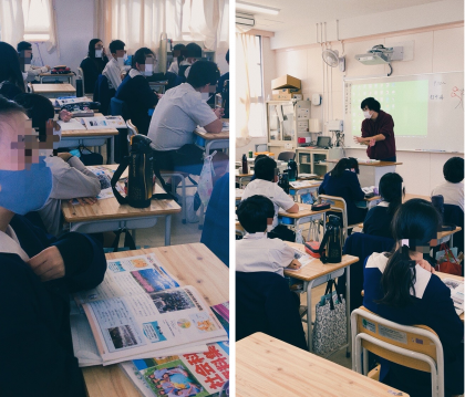 上段の2枚が1組の国語。「伝えたい心の残る言葉」の学習です。