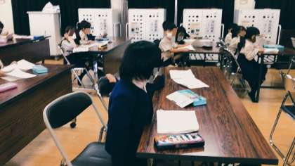 1年生は、多目的室で合同練習をしていました。台本を見ながらの読み合わせです。大きくはっきりした声でセリフを言えるようしっかり頑張りましょうね。