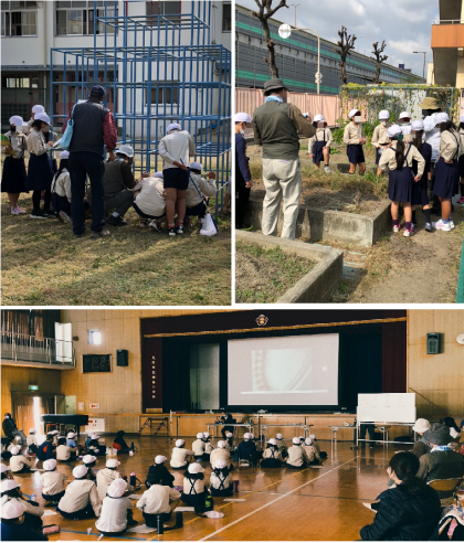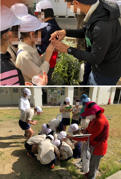 4年生の理科です。ゲストティーチャーに来ていただいて校内の生き物探しをしました。9月に次いで2回目です。4班に分かれて校内各所で探しました。集めた生き物は体育館でモニターに映して解説してもらいました。とても楽しそうでした、ありがとうございました。