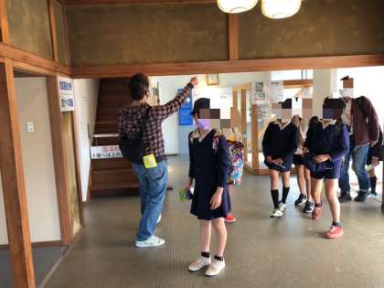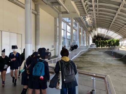 野島断層保存館の見学風景です。子どもたちは、実際の断層やメモリアルハウス(断層の真上にあった家)の様子を見たり震災の揺れを体験できる施設で揺れ体験したりして、震災の威力の凄さを感じていました。