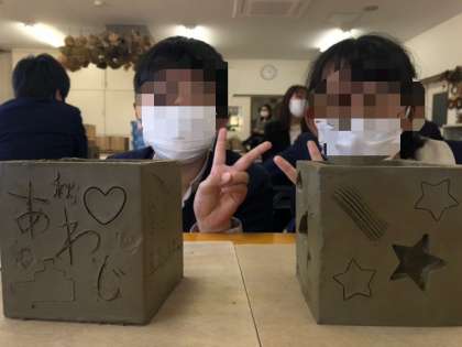 個性的な作品がたくさん出来上がりました。この後、数日かけてよく乾かしてから焼き、完成品になるそうです。楽しみですね。
