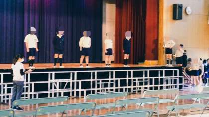 4年生の様子です。学習発表会の練習をしていました。講堂を使って本番さながらの練習に熱が入っていました。