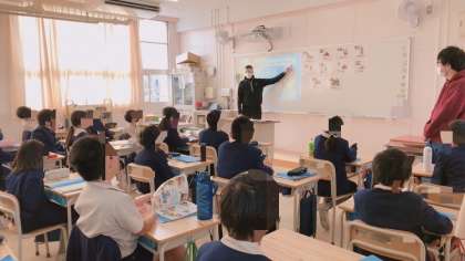 5年生の英語です。C−NETの先生が読んだ文章の発音をよく聴いて近くの友だちと言い合います。うまく発音できているかな。