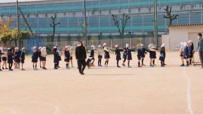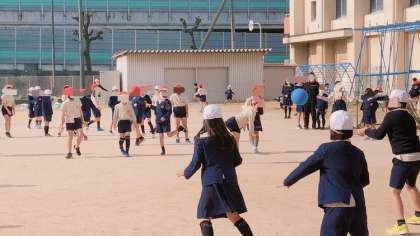 これまた15分休憩の時に3年生がみんな遊びをしていました。係の主導でドッジボールが始まりました。