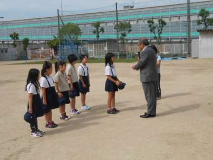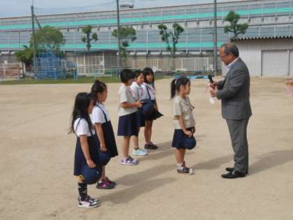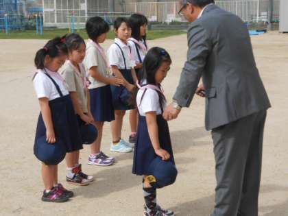 メダルを校長先生から渡してもらい嬉しそうな子どもたちです