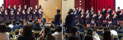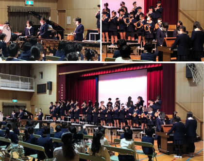 5年生の発表の様子です。「音楽発表会〜翼を抱いて〜」という題で、たくさんの曲をリコーダーを中心とした楽器で演奏しました。どの演奏も出来栄え抜群でした。