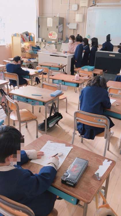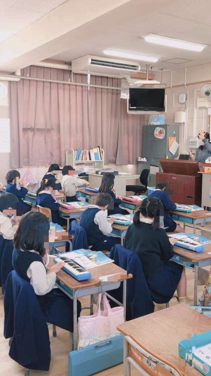 右側が1組。音楽の学習です。鍵盤ハーモニカを頑張っていました。
