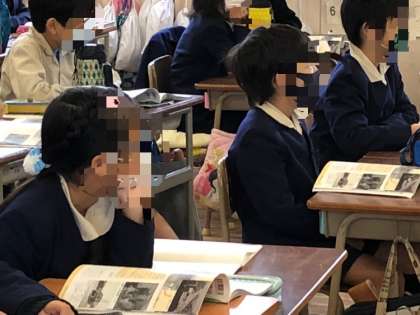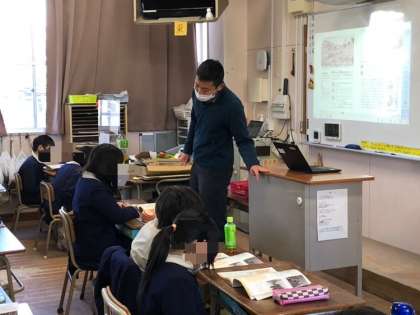 3年生の社会科です。大阪市の学習で昔の暮らしの学習をしていました。明日の社会見学で行く「くらしの今昔館」につなげます。