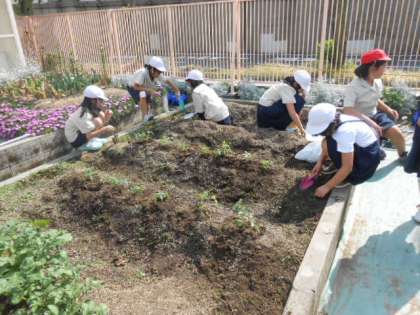 「おもちゃかぼちゃ」「トマト(凜々子)」「とうもろこし」を植えています。
